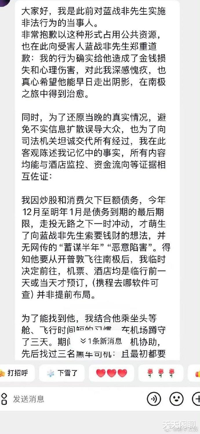 寻求“私了”未果后的策略:其自述曾试图联系蓝战非私了退款但未获回应。在私了无望、自知难逃法网的情况下,抢先通过网络发布一个对自己最有利的“故事版本”,试图影响公众看法,甚至给办案方施加某种“证据争议”的压力,是一种可能的博弈手段。