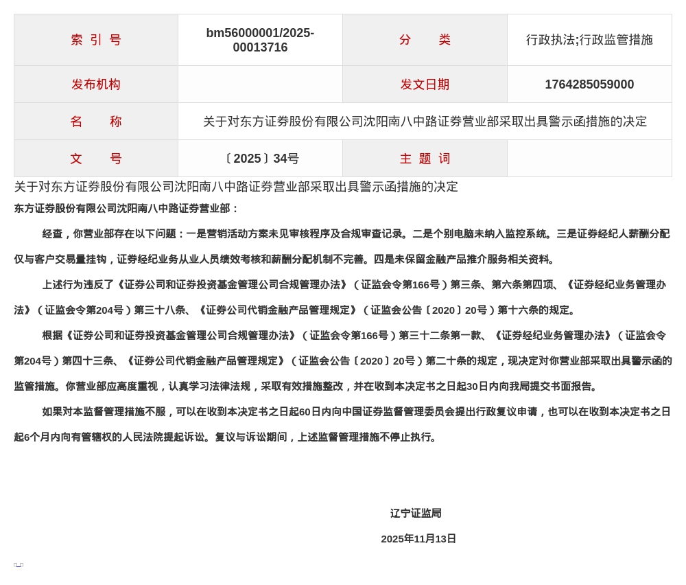 配资专业网上配资炒股 东方证券沈阳南八中路营业部被出具警示函,涉多项违规