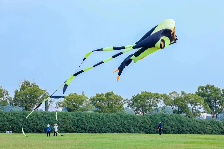 风筝的放飞需要考虑天气、地点、线长等多方面因素,是一个受天气影响的动态过程。风筝起飞时,需要根据风向、风力等天气状况,制定合理的起飞方案。操纵风筝时,需要掌握好手中线绳的牵引力度,根据风筝盘空的平衡、高低、倾斜等状况,有效地调整线绳的收放。